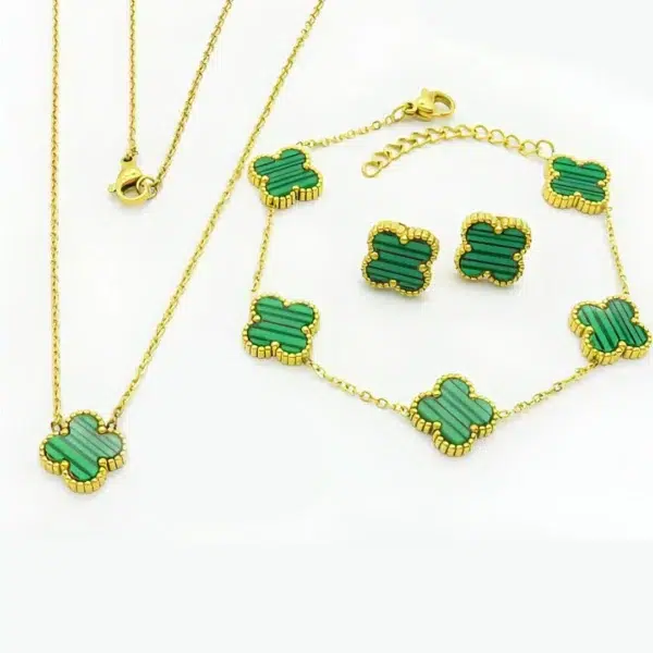 סט עלי תלתן צבע ירוק ציפוי זהב 18K