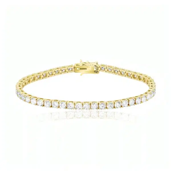 צמיד טניס אייס זהב 3 מ"מ משובץ זירקונים עגולים מכסף 925 שמצופה בזהב 14K.