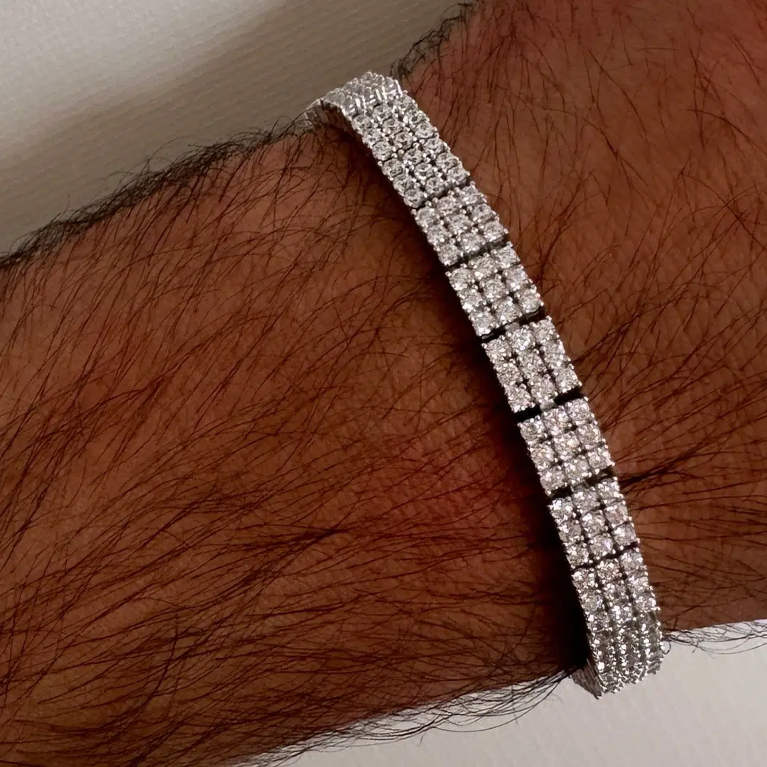 צמיד טניס כסף עם שלוש שורות זירקונים לגבר