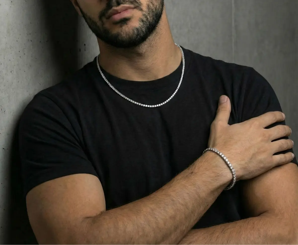 צמיד טניס מכסף לגבר עם סוגר יוקרתי