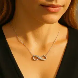 תליון האינפיניטי העדין עשוי מכסף סטרלינג 925 טהור, עם חצי שיבוץ של זירקונים נוצצים שמוסיפים ברק עדין.