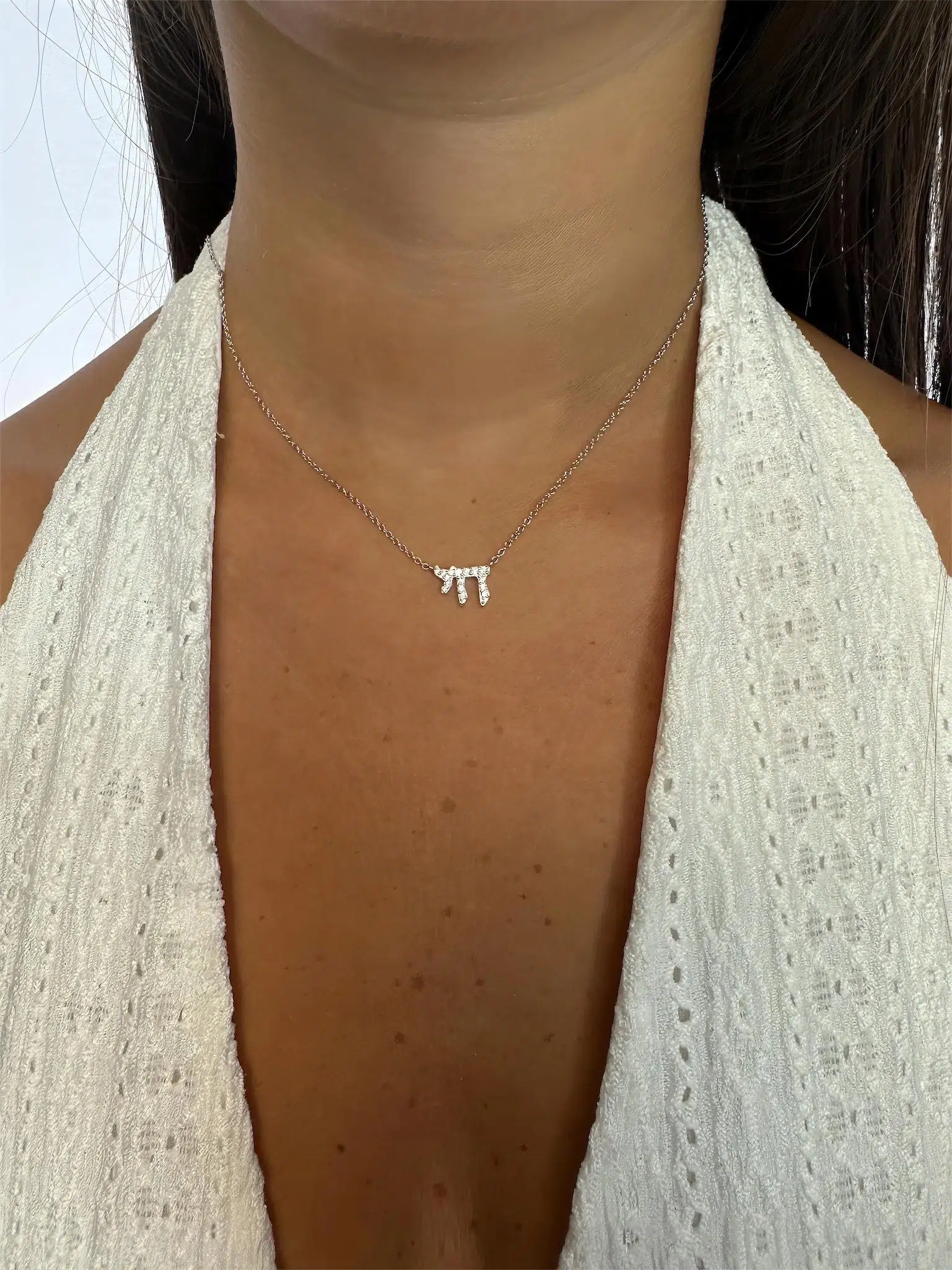 שרשרת קלאסית ועדינה בעיצוב "חי", עשויה כסף איכותי ומשובצת זירקונים מבריקים. מתאימה כמתנה מלאת משמעות ליקרים לכם או כתכשיט אישי לשימוש יומיומי.