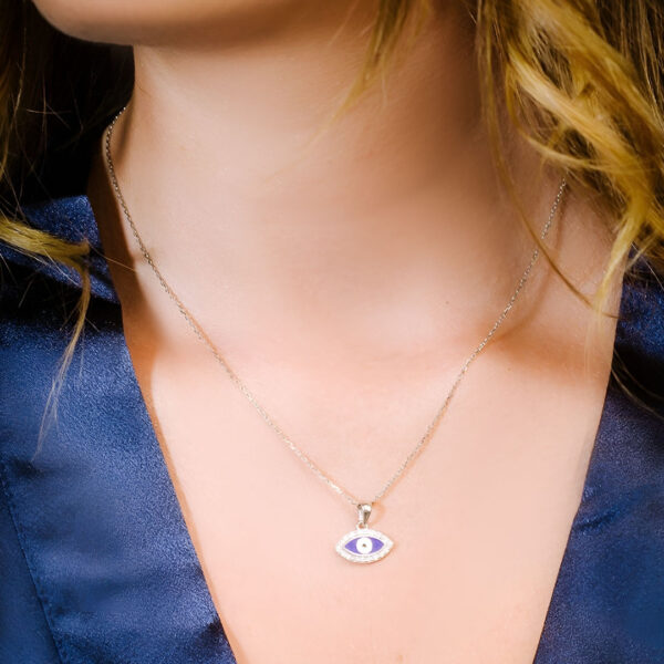 שרשרת עין כחולה מכסף משובצת זרקנים