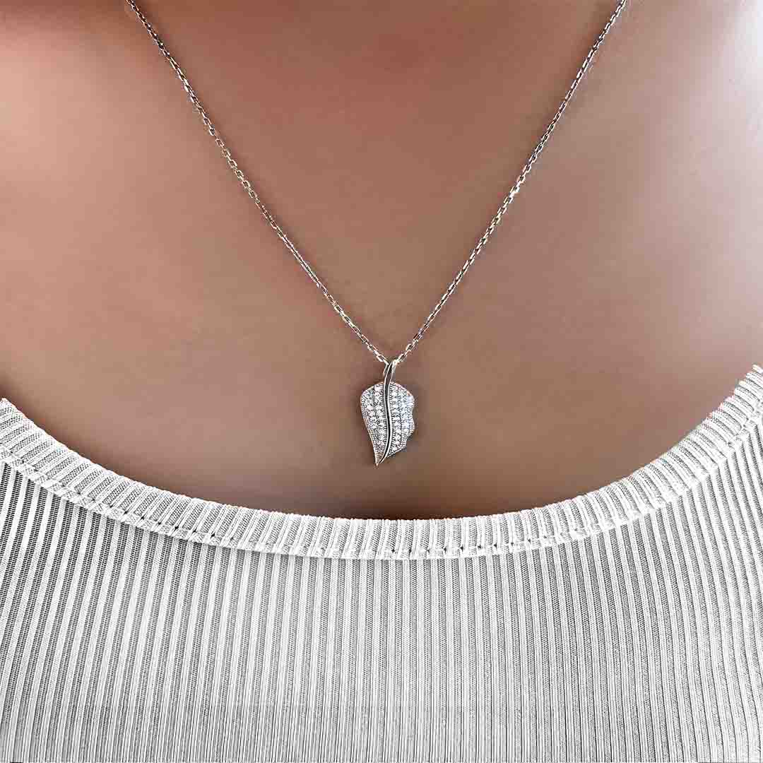 שרשרת עלה אלגנטית מכסף משובצת זירקונים