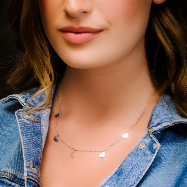 שרשרת תליוני לבבות מכסף 925 טהור לאישה. השרשרת משובצת בזירקוני AAAA בחיתוך יהלום, מצופה ברודיום להגנה מפני התחמצנות ושריטות. המוצר מגיע באריזת מתנה מהודרת וממותגת! חצי שנה אחריות.