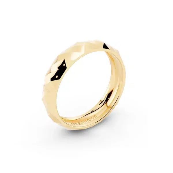 טבעת הולוגרמה מוזהבת, עשויה מחיתוכי לייזר בצורת מעויינים. הטבעת מגיעה באריזת ממותגת ומהודרת עם מטלית לניקוי תכשיטים ללא עלות וחצי שנה אחריות