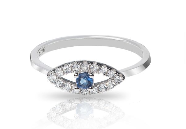 טבעת כסף עין בינונית שיבוץ כחול