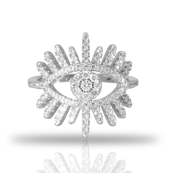 טבעת כסף עין גדולה משובצת זירקונים מכסף 925 טהור לאישה. הטבעת משובצת בזירקוני AAAA בחיתוך יהלום. מצופה ברודיום להגנה מפני התחמצנות ושריטות. המוצר מגיע באריזת מתנה מהודרת וממותגת! חצי שנה אחריות.