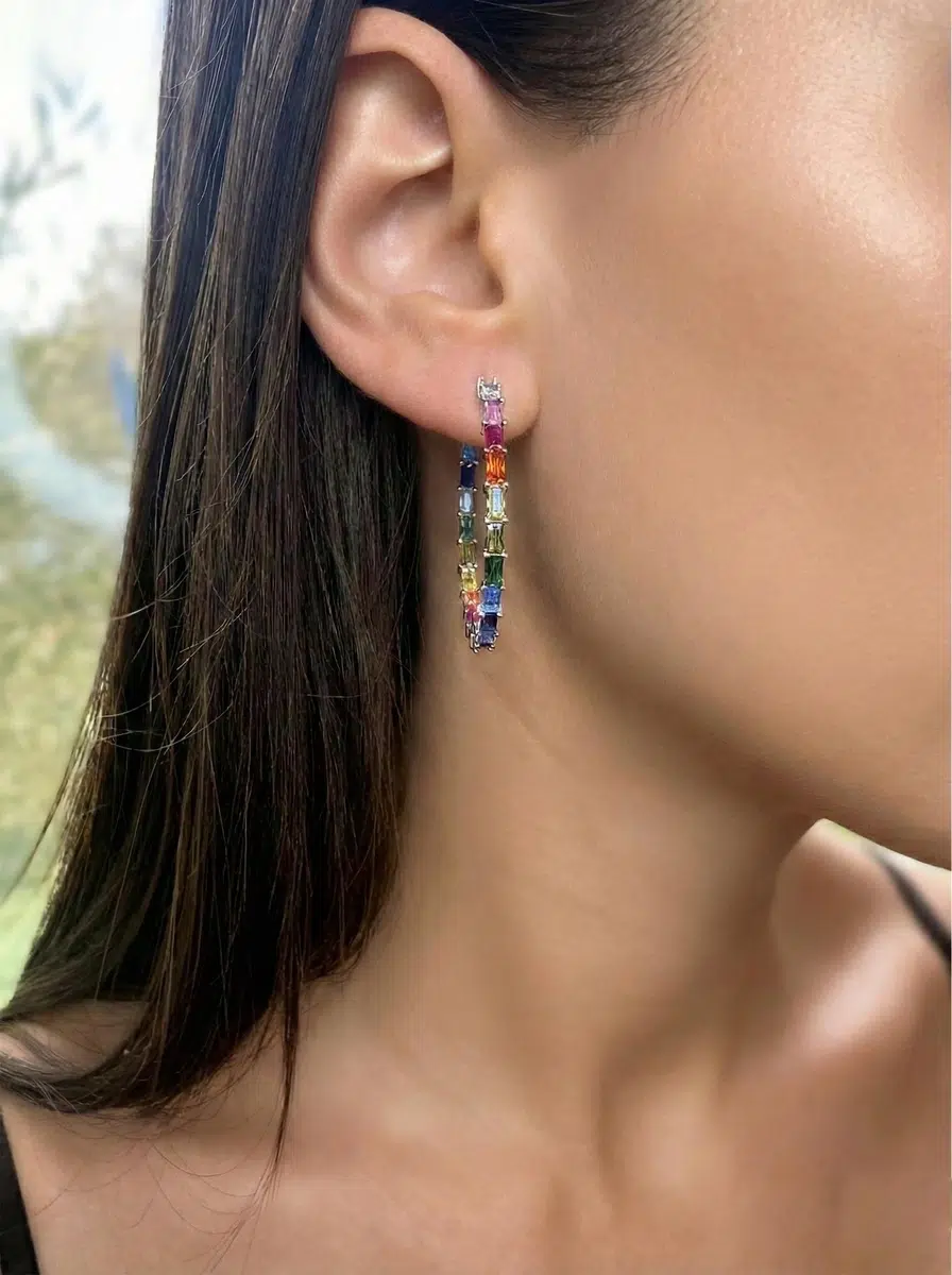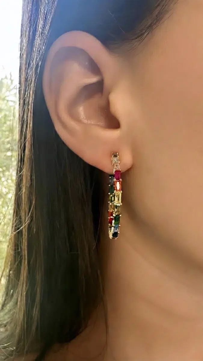 עגילי ריינבו, צבעוניים משובצים.