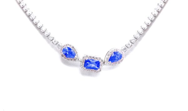 צ'וקר טניס מכסף משובץ בזירקונים אלמנט טיפות וריבוע כחולים