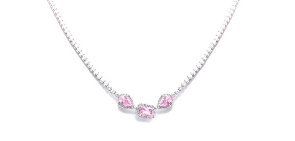 צ'וקר טניס מכסף משובץ בזירקונים אלמנט טיפות וריבוע ורוד