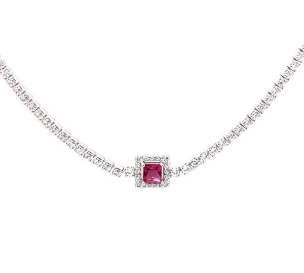 צ'וקר טניס עם אלמנט מרובע ורוד משובץ בזירקונים מכסף 925 טהור לאישה. השרשרת משובצת בזירקוני AAAA בחיתוך יהלום. מצופה ברודיום להגנה מפני התחמצנות ושריטות. המוצר מגיע באריזת מתנה מהודרת וממותגת! חצי שנה אחריות.