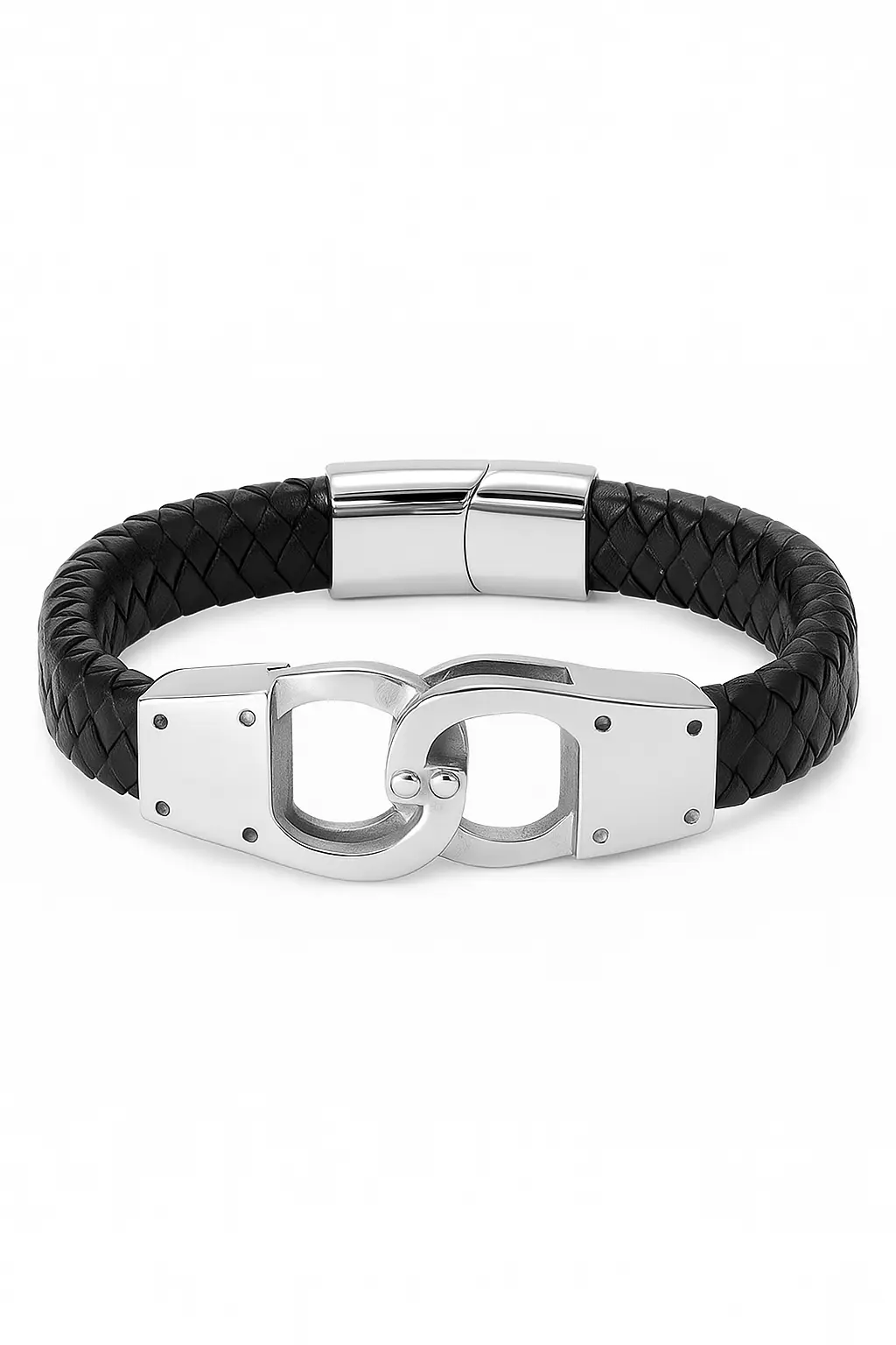 צמידים עשויים מחומר דמוי עור בשילוב אלמנטים מפלדת אל־חלד.