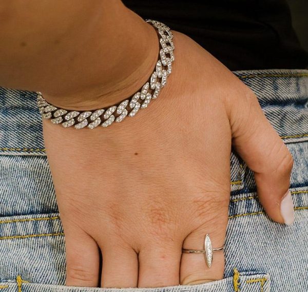 צמיד גורמט שזור בזירקונים וסוגר מהודר צבע כסף