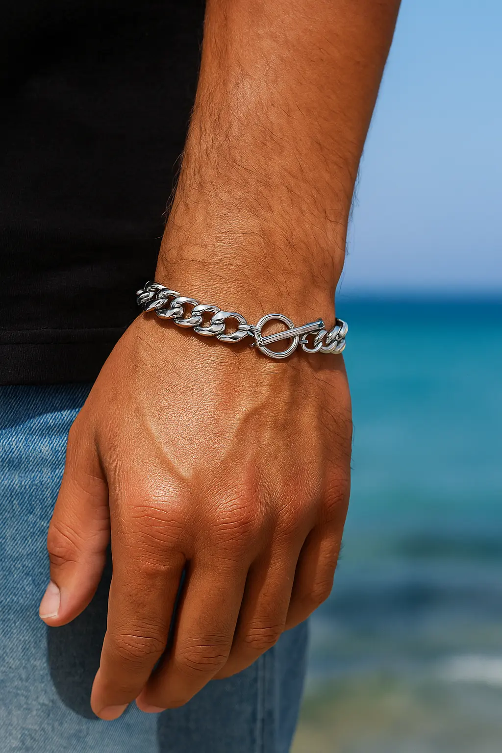צמיד חוליות עבות בסגנון קובני עם סגירת T