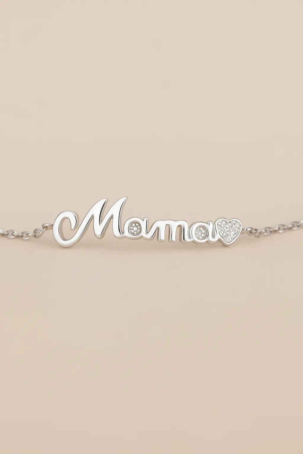 צמיד קטן ועדין עשוי כסף 925 טהור משובץ בזירקונים מנצנצים, עם הכיתוב MAMA שמסתיים בלב קטן ומלא משמעות.