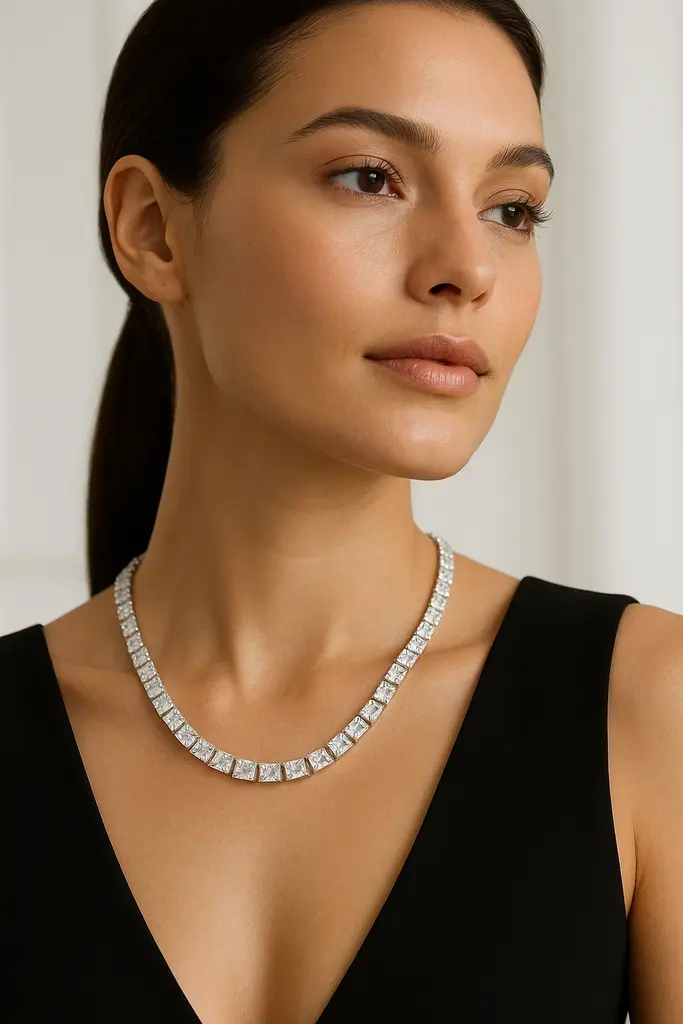 בוטיק 925 מציגים את ה"שרשרת הטניס הענקית זירקונים מרובעים – רויאל" הבלעדית שלנו – הצהרה אמיתית של יוקרה.