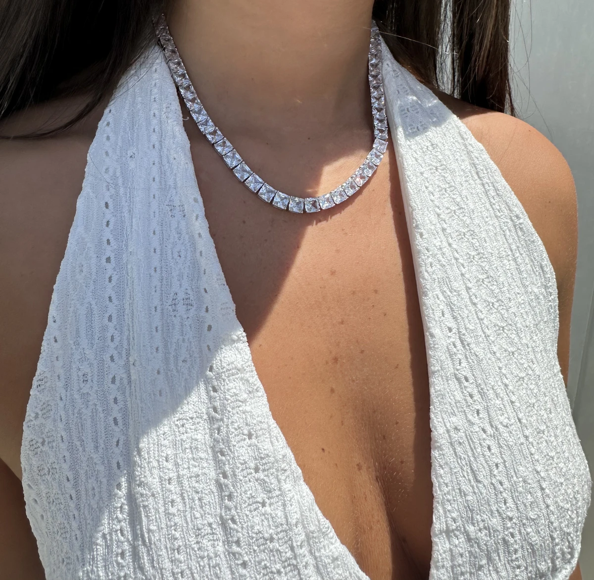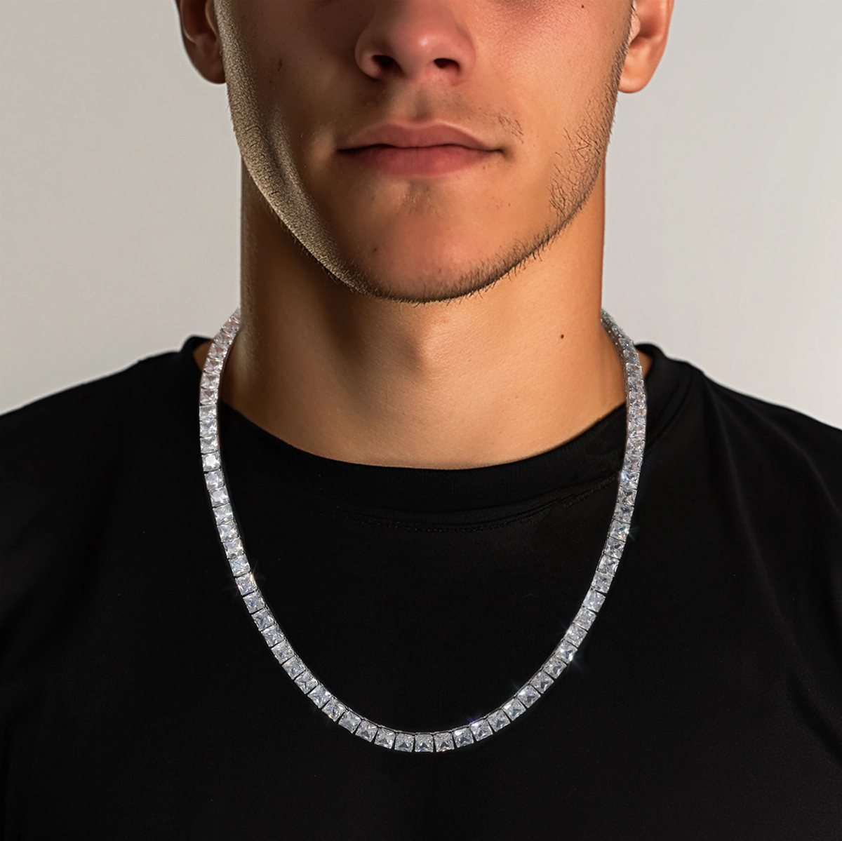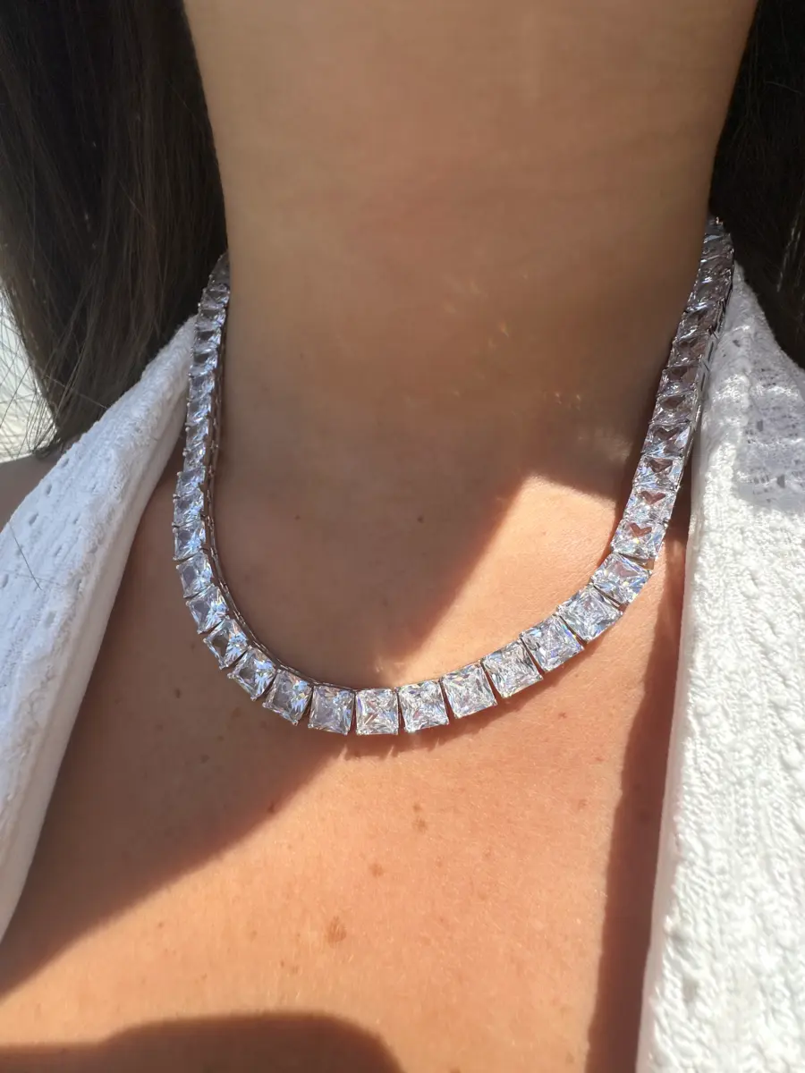 עשויה כסף 925 אמיתי עם רודיום. שרשרת הטניס המרובעת מתהדרת בגודל מרשים שיסנוור אנשים עם הברק שלה.