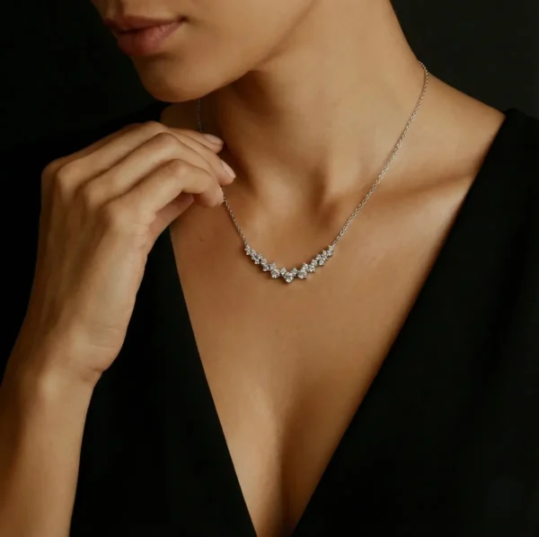 השרשרת משובצת בזירקון מרכזי בעובי 3 מ"מ, כאשר האבנים הולכות וקטנות בהדרגה עד לעובי 1 מ"מ.